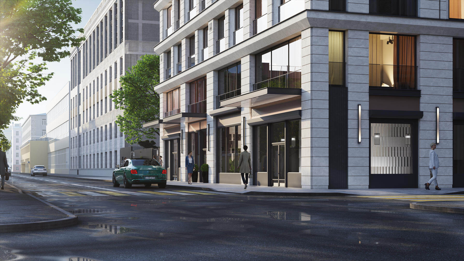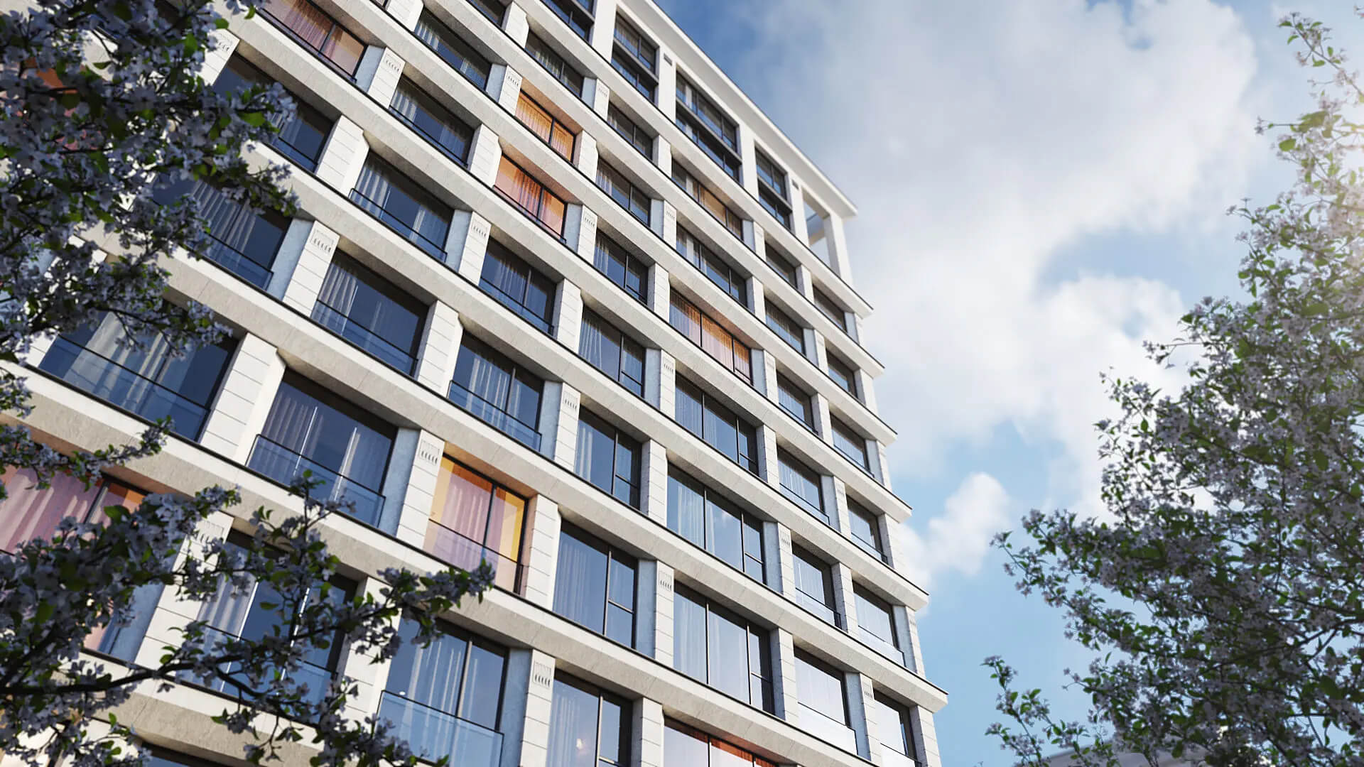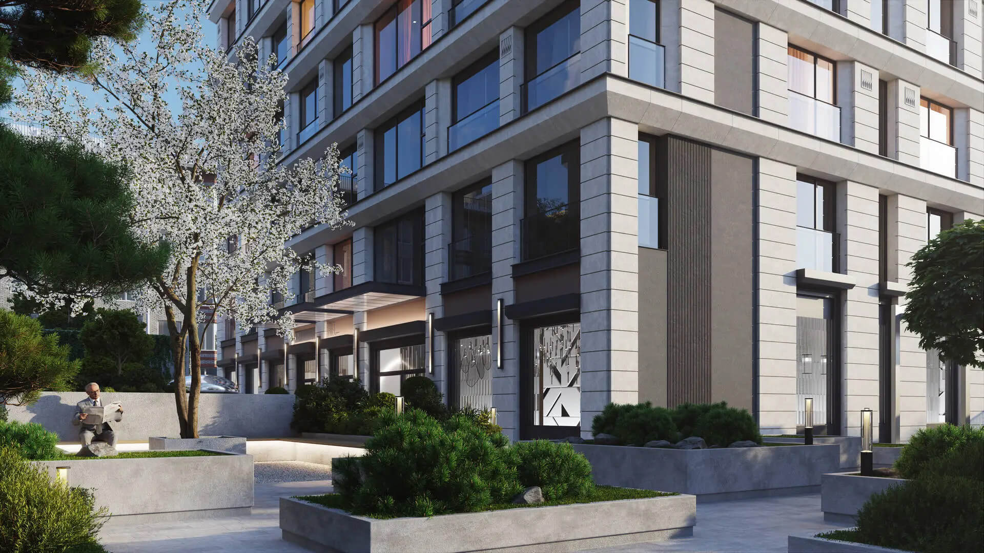 Особое внимание уделено деталям: высокие окна наполняют квартиры дневным светом, а потолки высотой до 6 метров создают ощущение простора и свободы. Концепция архитектуры интегрирована в ландшафт двора, что делает здание естественной частью своего окружения.