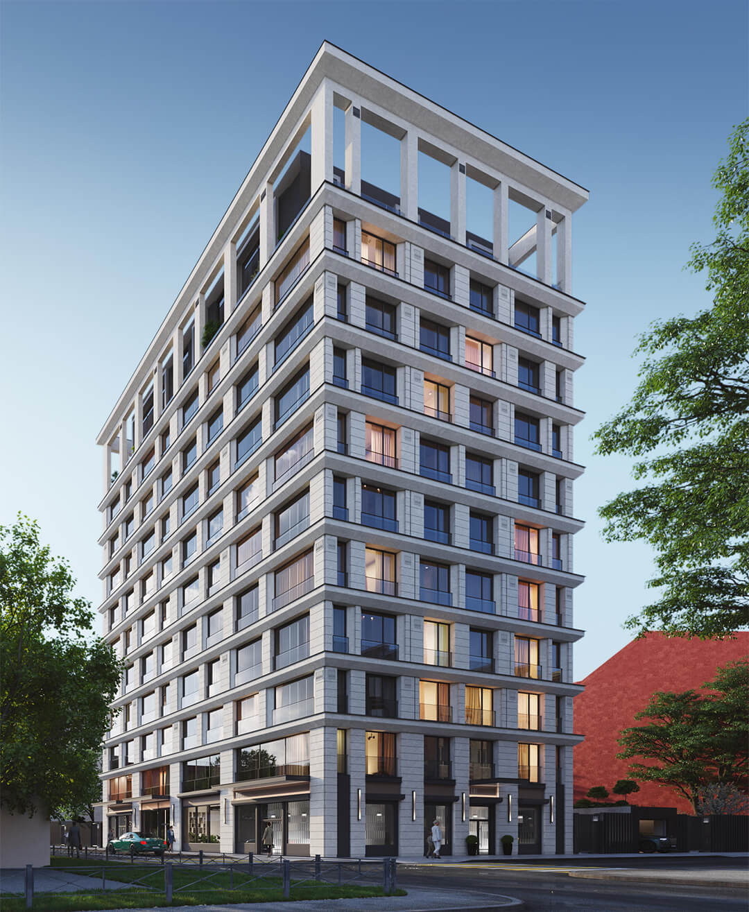 Архитектура Коллекционного дома 1919 — это современная интерпретация классических форм, выполненная с использованием архитектурного бетона и натурального камня. Чёткий ритм фасадов, гармоничные пропорции и выразительные линии формируют образ дома-аристократа, достойного своего места в панораме Петербурга.