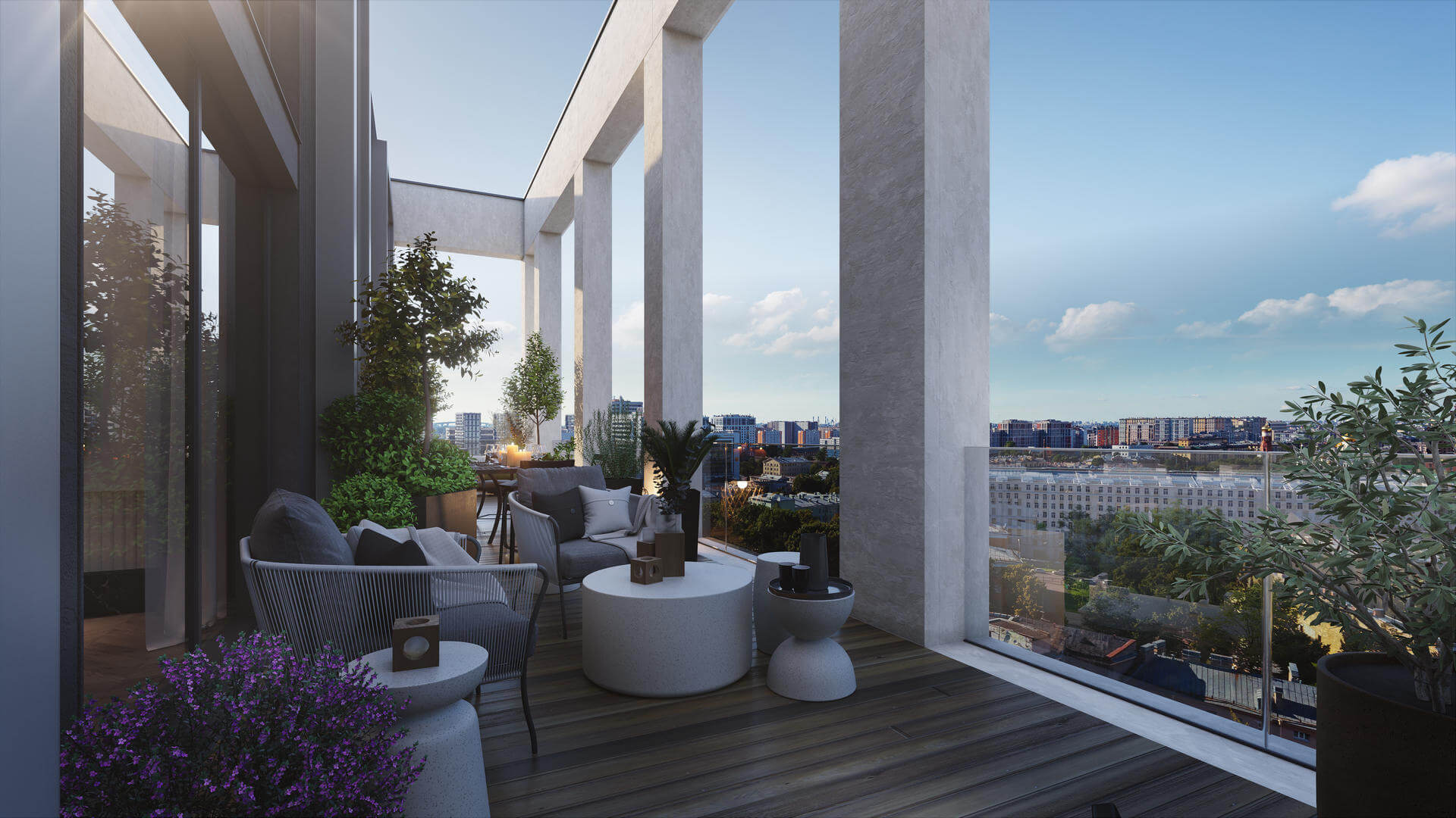 Вокруг дома — развитая инфраструктура района: рестораны, фитнес-клубы, торговые центры, школы, медицинские учреждения. Всё необходимое для комфортной жизни находится в шаговой доступности, а в самом доме — сервисы, которые делают её ещё удобнее.
